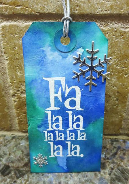 I have this old, wood mounted stamp in my stash that was just perfect for Day 11 of the Ellen Hutson 12 Tags of Christmas 2020 challenge. The inspiration for Day 11 is the song, "Deck the Halls", with its joyful Falalalala's all the way through. The tag is a manila tag that I inked with Distress Inks. Then I heat embossed the sentiment, and added die cut snowflakes by Spellbinders and Crafters Companion.