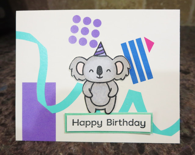 Although I sent my granddaughter a birthday card before her birthday, I needed to make another small card to attach to her gift. She loves cute critters, and they don't get much cuter than Lawn Fawn. So I pulled out my free birthday gift set, Party Koala, to make. The sentiment is by MFT. Silly me, I didn't realize I had the matching die, so I fussy cut it all by hand.